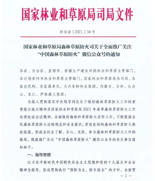 国家林业和草原局森林草原防火司关于全面推广关注“中国森林草原防火”微信公众号的通知